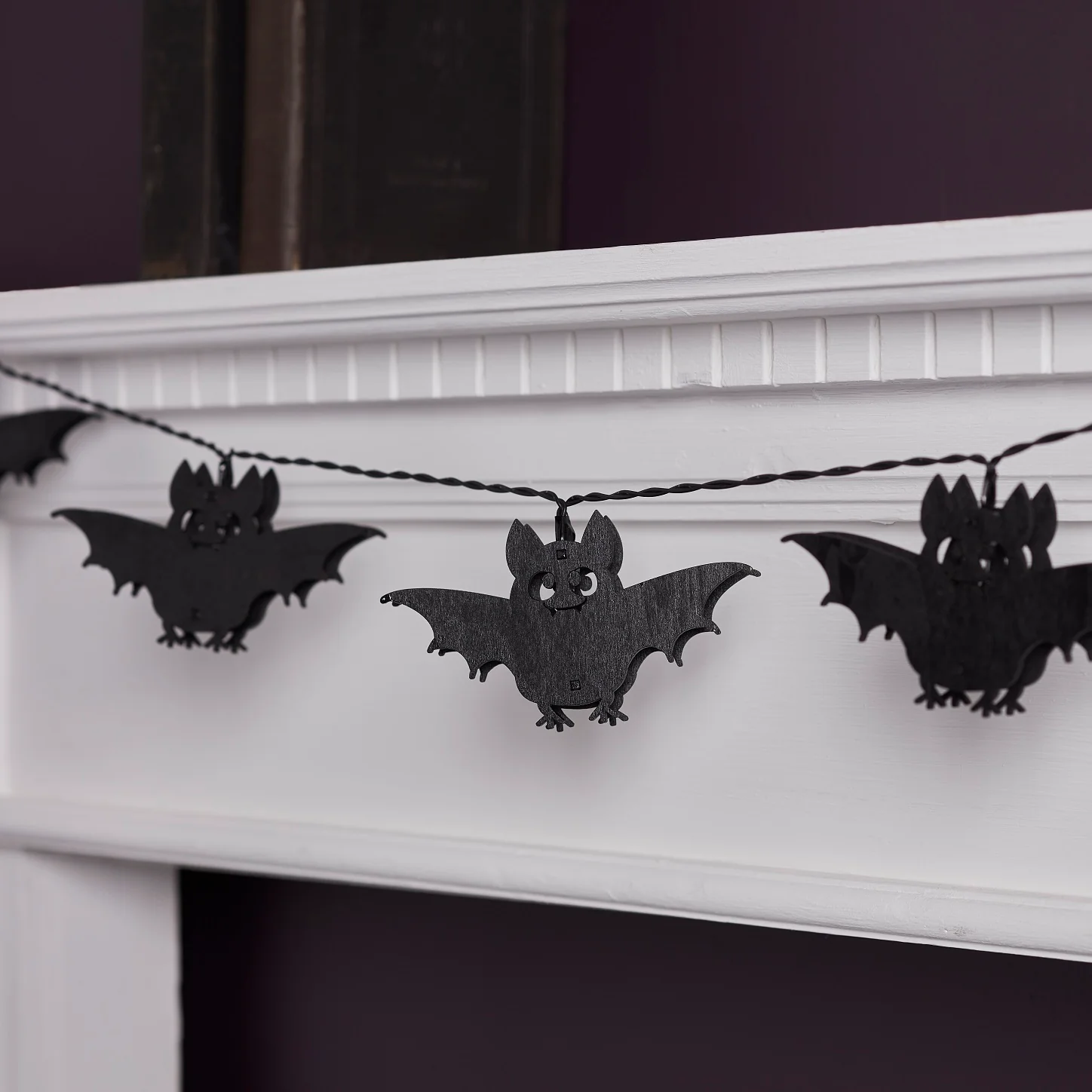 Impressionnez vos convives pour Halloween avec nos guirlandes lumineuses chauve-souris ! Dotées de LED violettes, elles ne manqueront pas de faire de votre maison hantée un véritable succès cette saison ! || Elles sont parfaites pour être suspendues à un manteau de cheminée, à une bibliothèque ou à une étagère. C'est également une superbe décoration pour les rampes d'escalier ou pour la table à manger, pour le plus grand plaisir de vos invités. Les 10 LED restent froides au toucher, ce qui permet de les placer en toute sécurité près des tissus et accessoires d'ameublement. Pour l’allumer, il suffit d'insérer 3 piles AA dans le boîtier à piles et de la mettre sur la position marche pour une illumination continue, ou d'opter pour la minuterie pratique pour 6 heures pour une illumination automatique à la même heure chaque soir.