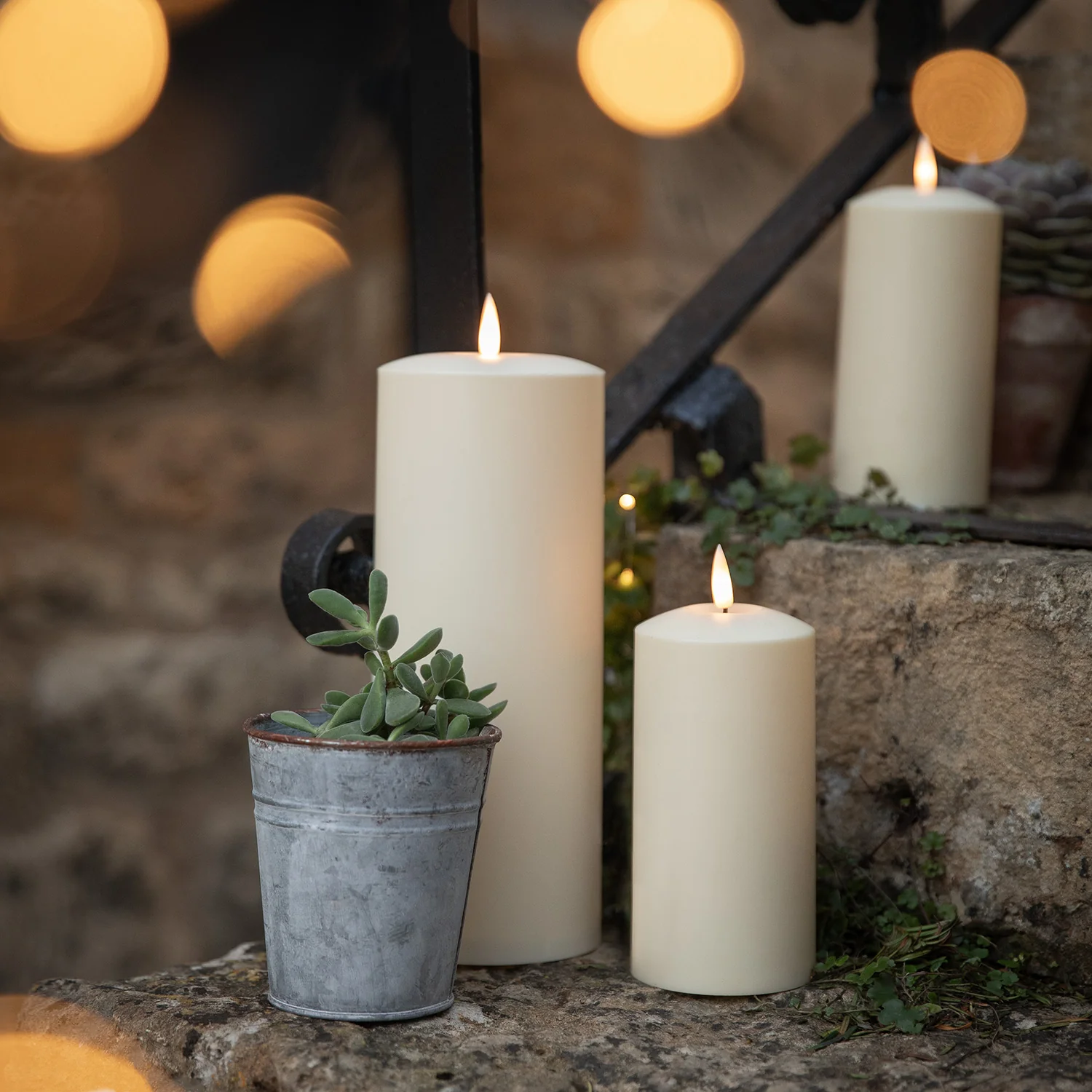 Offrez à vos invités un accueil des plus chaleureux et créez une ambiance de détente magique sous les étoiles avec ce lot d'éclairage solaire pour escaliers d'extérieur. Ce lot comprend une guirlande lumineuse solaire en grappe de 7 mètres, ornée de 468 LED blanc chaud, soigneusement disposées le long d'un câble vert, créant ainsi une ambiance chaleureuse et accueillante le long de vos escaliers ou rampes. Il comprend également des bougies solaires TruGlow® à différentes hauteurs. Placées stratégiquement le long des marches de votre escalier, ces bougies captiveront le regard et créeront une ambiance magique. Enfin, une guirlande micro LED solaire complète le tout, parfaite pour illuminer les plantes et arbustes environnants, elle ajoutera une touche subtile et délicate à votre jardin.