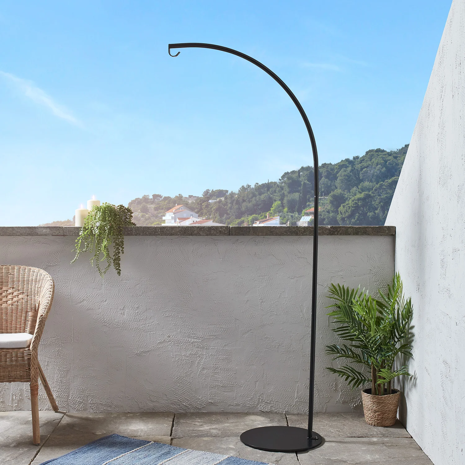 Créez une atmosphère sereine et contemporaine dans votre jardin cet été avec notre suspension solaire en rotin et son support. Avec 8 ampoules blanc chaud logées dans l'abat-jour en plastique effet rotin, la suspension ajoutera un éclat charmant à votre espace tout l'été. || Le support en fer de 1,92 m permet de suspendre la suspension à la hauteur idéale. Stylisez vos patios pour ajouter une lueur relaxante à vos espaces extérieurs et à vos repas en plein air. Il suffit de placer le support dans votre endroit ensoleillé préféré et d'y suspendre votre suspension en rotin artificielle pour obtenir un éclairage automatique sans souci tout au long de l'été.